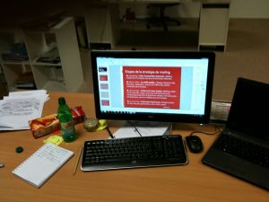 En gros j'ai été coincé dans l'ascenseur de mon immeuble, j'ai fais une étude de benchmarking, de l'audit, du référencement, un entretien client, deux réunions, une accroche publicitaire, de la rédaction et pas mal d'autres trucs. D'ailleurs je me suis rendu compte que oui, "hell yeah", j'ai un bureau rien qu'à moi avec mon nom dessus.