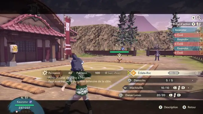 Pour réaliser cette mission, je vous conseille un Keunotor au niveau 50 afin d'avoir une vitesse suffisante pour ne pas se faire (trop) enchainer par les Vive-Attaque du Évoli.