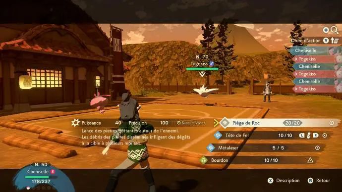 Tout le sel de cette épreuve est de choisir la bonne forme de Cheniselle pour ne pas se faire one-shot par le Togekiss qui adore les attaque Vol.