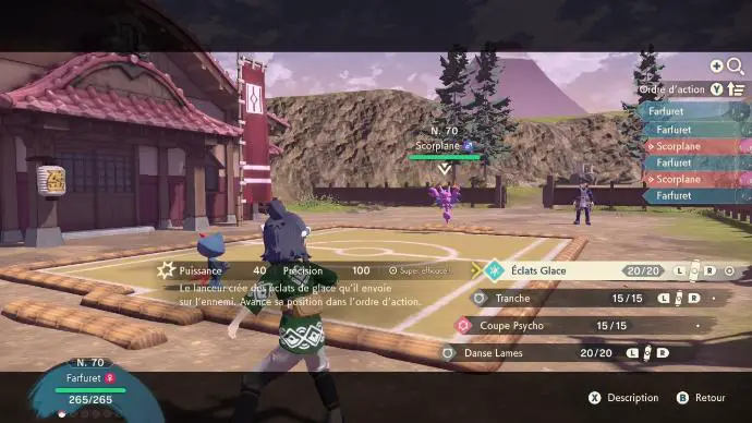 Dans ce combat, vous devrez vous équiper d'un Farfuret classique, trouvable dans les Failles Spatio-Temporelle. Ensuite, rien de plus simple : alternez les Éclats Glace en Style Normal et en Style Rapide et le pauvre Scorplane n'aura même pas le temps de réagir. Perso, j'ai attaqué 4 fois d'affilée. Beau score.