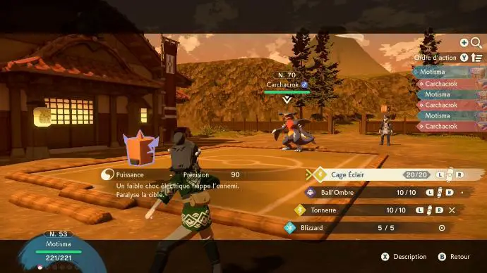 Défi très simple mais un peu chiant. Pour vaincre le Carchacrok, il vous faudra réussir à placer 2 Blizzard avec Motisma dans sa forme frigidaire.