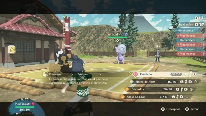 Donc voici le déroulé du combat de votre côté : Plénitude -> Éclate-Roc (un ou deux selon les actions du Muplodocus, en Style Rapide afin d'augmenter vos chances d'obtenir un double tour) -> Close Combat en Style Puissant.