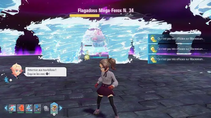 Quelle stratégie adopter pour le combat : Flagadoss envoie des tornades d'eau qui vont s'intensifier à la moitié de ses PV. Rien de bien compliqué, il faut se faufiler entre ces tornades sans vous faire toucher afin de l'attaquer.