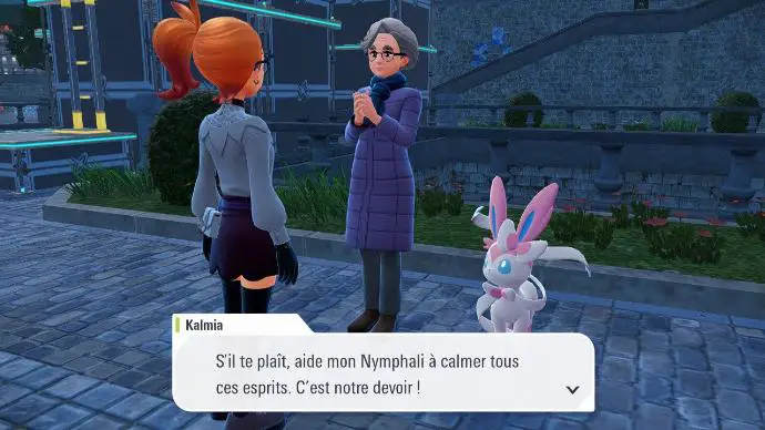 Rendez vous dans le quartier de Beau-Vert, au niveau du Canal Lacoulée. Vous y rencontrerez un personnage nommé Kalmia, accompagnée de son Nymphali. Elle vous demande de résoudre les conflits qu'il y a autour du Canal car son Pokémon ressent des ondes négatives.