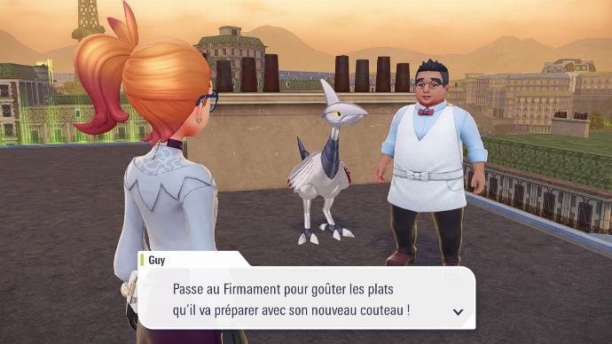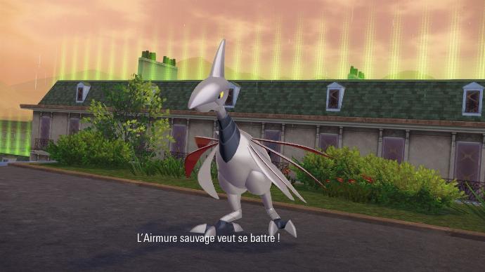 S'ensuit un échange entre Guy et le Pokémon DE TYPE ACIER pour décider qui va manier garder la plume entre eux deux. A ses mots Airmure s'émeut d'un tel ébat ; et pour montrer sa bonne foi, il replie ses larges ailes, laissant tomber son droit.