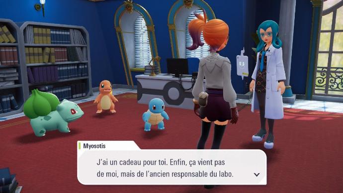 Vous recevrez un appel de Myosotis après avoir rempli quelques recherches pour elle, vous demandant de la rejoindre au Laboratoire Pokémon. Encore de l'exploitation forcée ? Que nenni, une belle surprise vous attend qui risque de vous rappeler des souvenirs si vous avez joué à Pokémon XY.