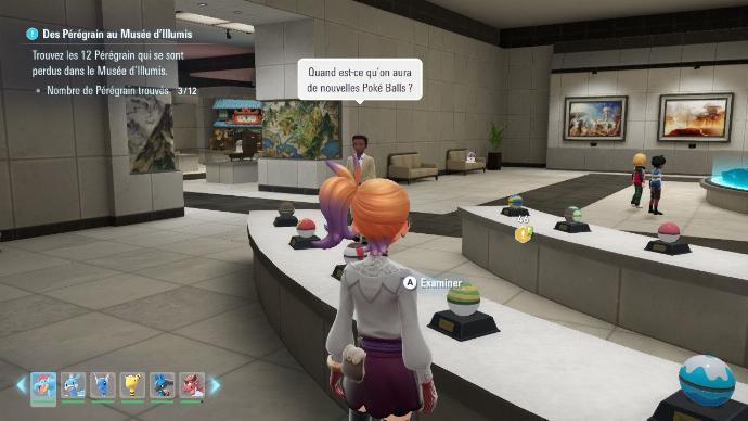 Comme son nom l'indique, rendez-vous au Musée d'Illumis, au nord sur la Rue Septentrionale et parlez à Vargo, sur votre gauche quand vous rentrez dans le musée. Il vous fait l'éloge des Pérégrain avec sa copine avant de vous demander de retrouver les 12 Pokémon cachés ou presque un peu partout dans le musée. Il vaut mieux ne pas courir pour les chercher. Voici les emplacements pour les trouver au besoin dans le sens de la visite du musée :