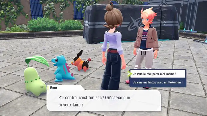 Boro vous donne des précieux conseils pour votre combat qui va vous opposer à Henriette, et à son Pandespiègle. C'est l'occasion de découvrir les mécaniques spécifiques à ce jeu. En effet, le combat se déroule en temps réel. Chaque capacité a un temps de recharge indépendant, et il faut cibler l'adversaire. Malgré cette spécificité, le combat ne devrait présenter aucune difficulté spécifique, sauf en cas de joycon drift particulièrement intense.