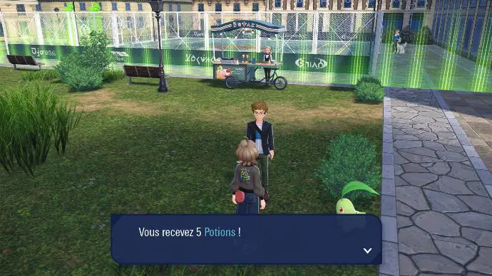 Suivez ensuite Boro sur les toits, en brisant les Méga Cristaux sur votre chemin. Il vous explique ensuite que vous pouvez vous défenestrer sans aucun risque grâce au mode d'atterrissage en douceur de votre Motismart. Vous arrivez ensuite à l'entrée de la Zone Sauvage 2. Boro vous laisse enfin tranquille, vous conseille de capturer des Pokémon, et vous propose de le retrouver au food truck de la Tour Prismatique. N'hésitez pas à parler à la dame à droite de l'entrée de la Zone. Elle vous remettra 10 Poké Balls.