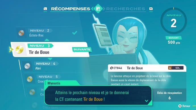 Vous obtenez donc des points de recherches, et passez au niveau de recherches suivant, ce qui vous permet d'obtenir une récompense, en ouvrant le menu : la CT004 ‑ Éclate-Roc. C'est également l'occasion d'apprendre que les CT sont à nouveau utilisable à l'infini (dieu merci !).