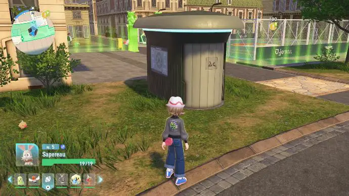 Une fois sorti⋅e du Labo, vous tombez nez-à-nez avec un autre coéquipier : Inno, accompagnée de son Baggiguane. Ilvous offre un Chapeau trilby avec rayure, et vous rappelle comment changer votre apparence (en appuyant sur la touche -). Boro, dont vous pensiez vous être débarrassé⋅e, vous appelle immédiatement après, pour vous dire d'apprendre Éclate-Roc à Sapereau, afin de pouvoir casser les cailloux (eh oui, c'est aussi le retour de la mécanique des CS !).