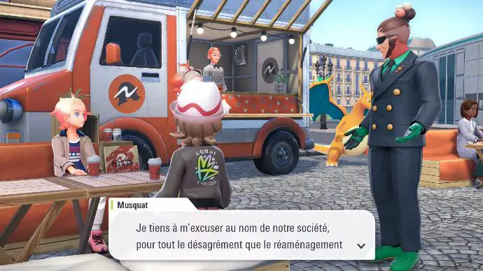 Après avoir retrouvé Boro au food truck, il vous offre le café (à seulement 14€). Une fois assis⋅es, un homme en noir à rouflaquettes, nommé Monsieur Musquat, vient vous trouver, C'est le secrétaire de la présidente de la Société Quazar, qui vient s'excuser personnellement du fait que vous ne puissiez pas visiter la Tour Prismatique, à cause des travaux. Après cette interaction tout-à-fait naturelle, il repart, et Boro vous invite à retrouver Millie, à l'Agence Beladonis.