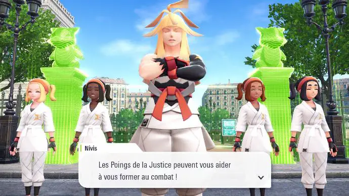 Sur la route, vous rencontrez un dénommé Nivis, qui n'a définitivement pas l'air d'être le méchant du jeu. Représentant des Poings de la Justice, il propose d'entraîner les gens à affronter des Pokémon sauvages à mains nues, pour pouvoir se débarrasser des Zones Sauvages, et avoir une meilleure communion avec les Pokémon sauvages. Sa rhétorique semble être une fusion douteuse de celles de N, et de ton oncle bourré qui prétend qu'il pourrait vaincre un ours à mains nues.