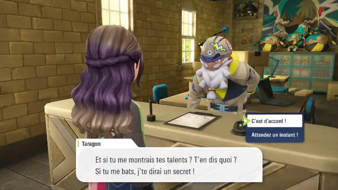 Au milieu d'une discussion dans le hall de l'hôtel à propos des Méga-Évolutions Ferox avec vos camarades de la Team MZ, vous recevez une nouvelle notification de l'application Royale Z-A, qui vous indique que votre prochain match qualificatif se fera contre Nivis (mais si, vous vous souvenez ? Le zinzin qui voulait 1v1 des Machopeurs.). Boro vous explique que Nivis utilise principalement des Pokémon de type Combat, et que son dojo se trouve à Jaunemont, près de la Place Jaune.