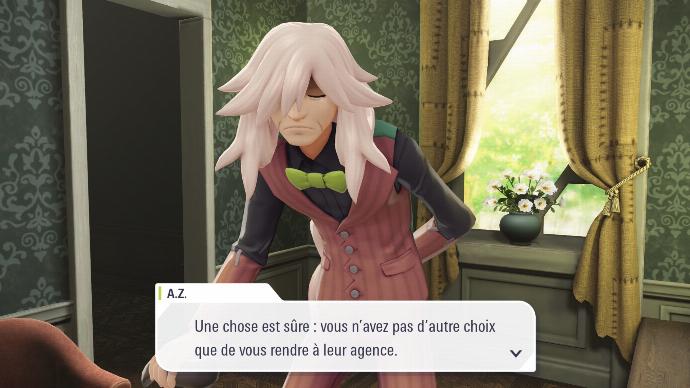 Le lendemain, vous vous retrouvez dans le hall de l'hôtel, seul⋅e avec Inno. Il vous offre une paire de baskets modernes, puis Rudi vous rejoint, et vous informe que Boro a emprunté de l'argent à des types qui ne rigolent pas du tout (a.k.a. le Clan Dérouillard), et que c'est probablement en lien avec sa soudaine disparition. C'est alors que vous recevez un appel d'un⋅e inconnu⋅e, qui vous demande si vous séjournez à l'hôtel Z. Comme vous pouvez vous y attendre, c'est un membre de la pègre locale qui vous appelle pour vous parler des dettes de Boro. Il vous donne rendez-vous dans leur agence à Valcyan, en précisant bien de venir avec vos deux genoux en état de marche, pour une raison non-précisée. Rudi précise que les sommes empruntées sont faibles, mais que le Clan Dérouillard pratique des taux d'intérêts usuriers. A.Z. propose que vous essayiez de dialoguer avec eux, et vous dit que vous n'avez aucun autre choix que de vous rendre à leur agence.