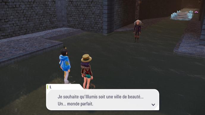 Sur les berges, vous retrouvez une sbire, qui vous emmène dans les égouts d'Illumis et vous charge de détruire tous les Méga-Cristaux. Une fois ceci-fait, retournez la voir, puis resortez des égouts. C'est alors que Corvault vous retrouve. Il vous interroge sur les Pokémon Méga-Ferox, mais aussi sur L. Corvault vous apprend que L s'appelle en réalité Lysandre, et a pris soin de lui quand il était jeune, avant de disparaître il y a cinq ans. Il vous dit qu'il souhaite le retrouver pour pouvoir le remercier, puis vous propose une nouvelle mission. Il vous donne rendez-vous sur le Terrain de Combat de la Place Centrale.