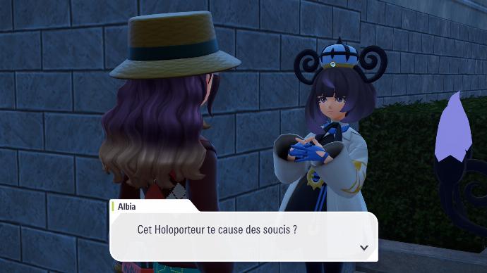 Rejoignez ensuite Inno au sud de la Zone Sauvage n°4. Vous vous retrouvez face à un Holoporteur qui semble ne pas fonctionner. Vous remarquez qu'Albia vous observe, avec son Lugulabre. Elle vous demande de l'affronter avant qu'elle ne vous aide à régler ce problème.