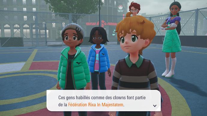 Une fois sur place, vous rencontrez deux personnes, appelées Mitchell et Bérénice, en train de dispenser des conseils de combat Pokémon à des enfants. Ceux-ci viennent vous voir, et vous demandent de faire partir les deux adultes, faisant partie de la Fédération Rixa In Majestatem. Vous affrontez d'abord Mitchell, puis Bérénice.