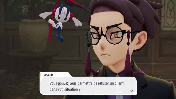 Vous y retrouvez Rudi et Inno, décontenancé⋅es par la teneur des missions confiées par le cartel local. Vous recevez alors un appel de Corvault (oui, encore lui). Il vous convoque, seul⋅e, à l'agence. Une fois sur place, Corvault vous explique qu'il n'a plus de travail pour vous, et que vous avez remboursé vos intérêts (ce qui en dit long sur le court du Pokédollar), mettant fin à la vingtième mission principale. Il vous explique ensuite qu'il souhaite vous affronter, au même moment où, par coïncidence, vous recevez une notification qui vous annonce qu'il sera votre prochain match qualificatif, pour atteindre le rang C.