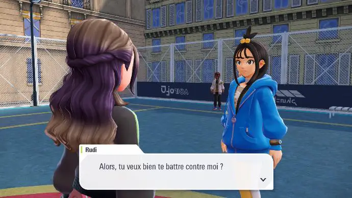 Retrouvez vos acolytes sur le terrain de combat en face du Centre Pokémon de l'Avenue Floréal. Rudi est la première à vous combattre.