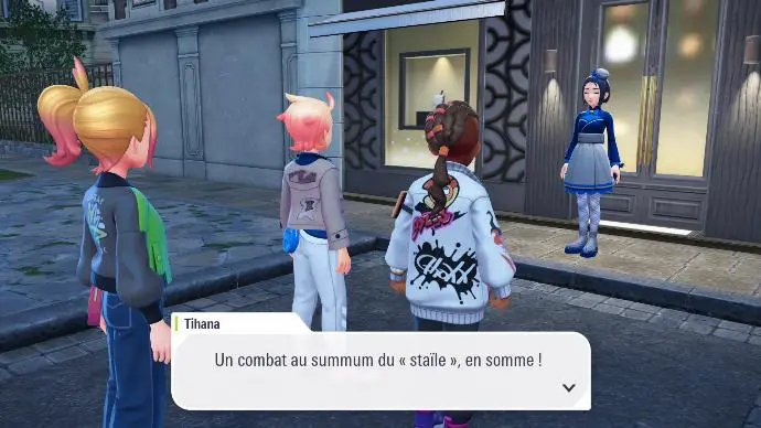 Avant d'y aller, il faut que vous ayez une tenue adaptée. Inno vous propose donc d'aller à Chic-à-Porter, avenue Floréal, pour vous relooker, afin de mieux faire la promotion de l'hôtel. Vous y rejoignez Inno et Boro, et êtes accueilli⋅es par Tihana, la styliste de l'enseigne. Elle vous explique, en invoquant des raisons assez fumeuses, que pour obtenir des vêtements, il faudra l'affronter, en utilisant un Pokémon Méga-évolué.