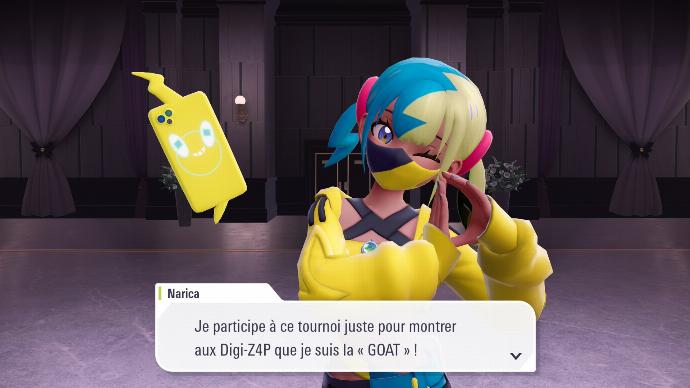 Après votre victoire, L interpelle les 7 personnes présentes, les enjoignant à se questionner sur la raison de la présence de Zygarde. Puis Violine se réjouit de pouvoir reprendre votre match qualificatif.