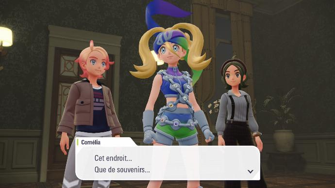 Durant le repas, vous en apprenez un peu plus sur Cornélia : il s'agit d'une ancienne amie d'A.Z. . C'est elle qui lui a prêté un Lucario (le même qu'il vous laisse dans votre chambre après son décès). En tant qu'ancienne habituée de l'hôtel, elle garde toujours sur elle la clé de la chambre 301, expliquant pourquoi cette dernière manquait. Vu que c'est la première fois qu'on entend parler de ce mystère, bah osef un peu mais soit (en plus, on a même pas accès au troisième étage donc vraiment osef de chez osef).