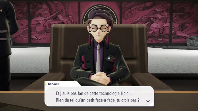 Une fois fait, Gypso, le bras droit de Corvault, vous appelle pour vous donner la position d'une faille possédant un Pokémon Méga-Férox.