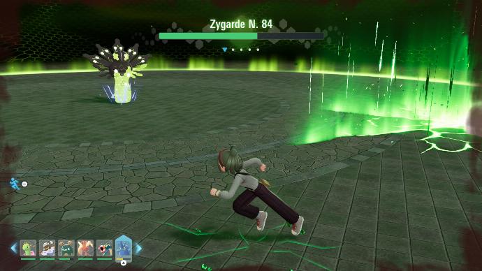Parfois, Zygarde absorbera une énorme quantité d'énergie. C'est le moment de rentrer votre Pokémon dans sa Ball et vous préparez à courir. Le Légendaire va invoquer une lumière verte explosive sur votre position.