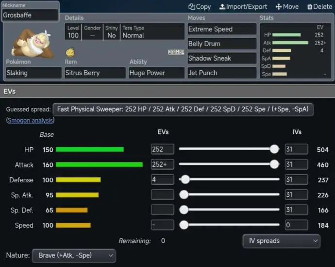 Monaflèmit ayant 160 de statistique de base en Attaque, on pourrait se dire que c’est suffisant. Cependant, en y mettant les IVs, EVs au max, avec une nature qui booste l’attaque, le talent Coloforce et en utilisant Cognobidon, on multiplie par 9 la puissance de ses attaques. Épaulé par 3 attaques de priorité dont une STAB pour profiter au mieux des forces de Monaflèmit, il pourra one-shot tout le jeu gaiement. Même Airmure défensif se fait one-shot, qu’est-ce que je peux rajouter à part que la torgnole de ton daron alcoolique doit faire bien moins mal qu’une mandale de Monaflèmit. |